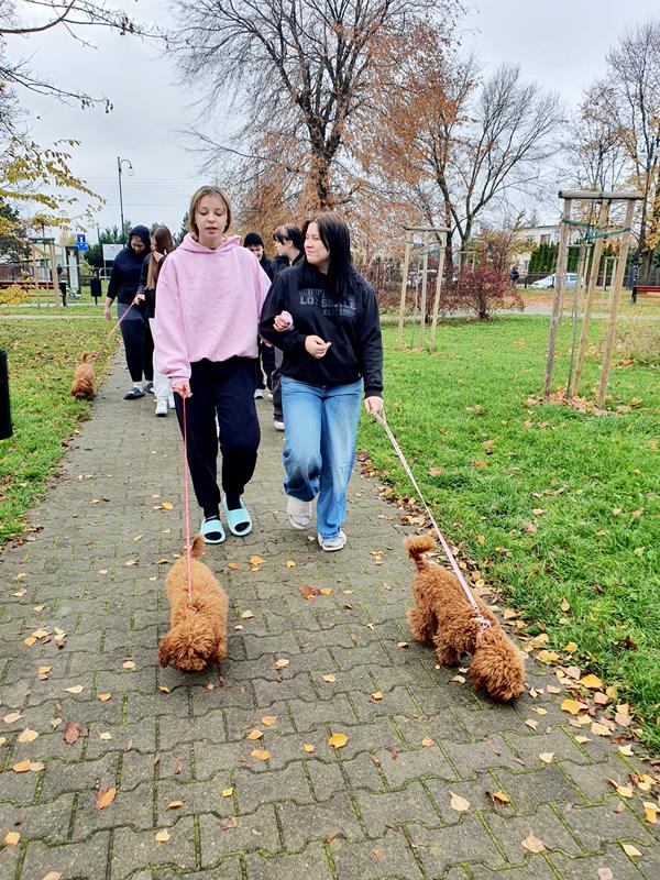 Podczas zajęć z dogoterapii dziewczęta miały możliwość poznania zasad bezpiecznego kontaktu z psem, głaskania, karmienia oraz wykonywania prostych poleceń i ćwiczeń z udziałem zwierzęcia. Zajęcia sprzyjały budowaniu relacji opartych na zaufaniu, empatii i odpowiedzialności.