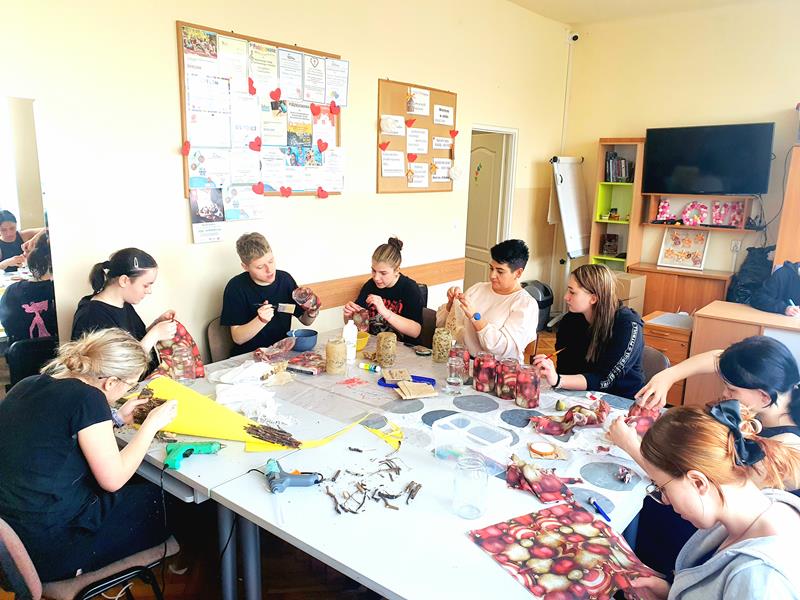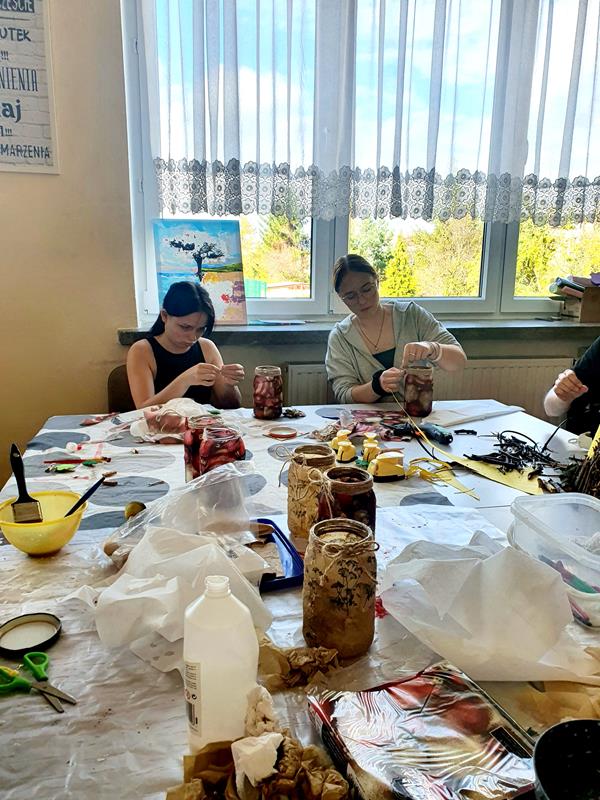Uczestniczki pracowały z zaangażowaniem, pomagając sobie nawzajem i dzieląc się swoimi pomysłami. Wspólne tworzenie lampionów sprzyjało rozmowie o symbolice światła jako znaku nadziei i pozytywnych zmian w życiu. Zajęcia przebiegły w miłej i spokojnej atmosferze, wzmacniając relacje między wychowankami.