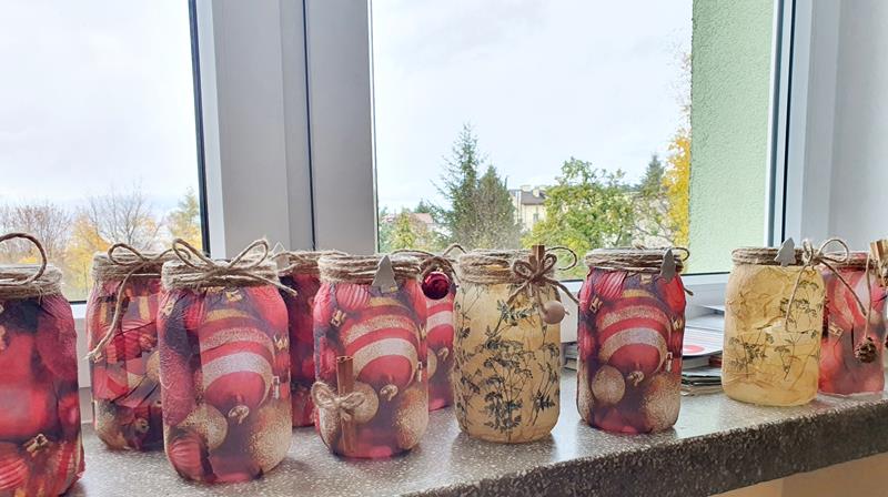 Podczas zajęć koła plastycznego wychowanki wykonywały lampiony z wykorzystaniem słoików serwetek, bibuły, sznurka, światła led. Celem zajęć było rozwijanie kreatywności, cierpliwości, umiejętności współpracy w grupie.